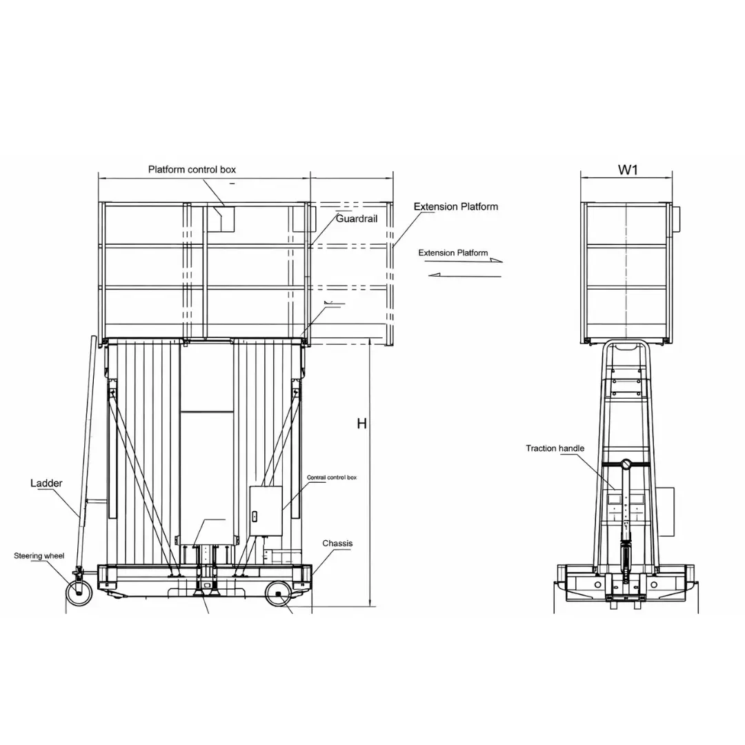 The Double Mast Aerial Work Platform (AWP) is specially designed for safe and efficient work at height. It is widely used in warehouses, industries, cold storages, and scalable storage facilities for maintenance of high structures and machinery.This machine ensures: Smooth vertical lifting, Easy mobility within the workspace, Stable and secure elevated operations, Convenient movement across warehouse floors,